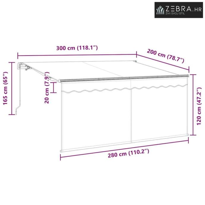 sustavom, tenda se može lako proširiti ili povući ovisno o tvojim