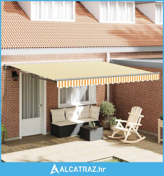 Skrovita tenda Žuta i bijela 400x300 cm Aluminij i poliester - NOVO