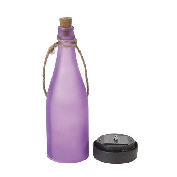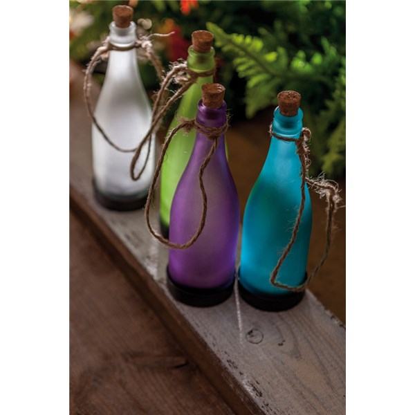 Za romantičan ugođaj u Vašem vrtu ili terasi. Boca je izrađena od obojenog mliječnog stakla, dekorativnom trakom za vješanje, s integriranim solarnim panelima u boce i punjivom baterijom. Svjetlo se pali kada padne mrak, gumb za uključivanje / isključivanje na dnu boce.