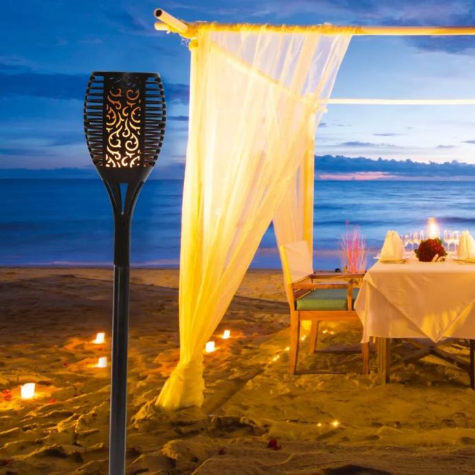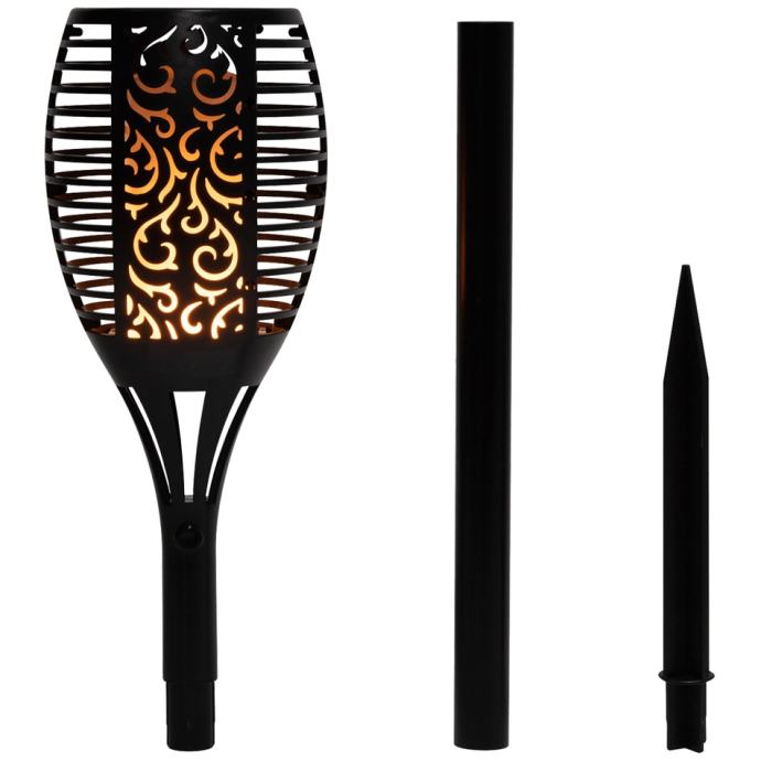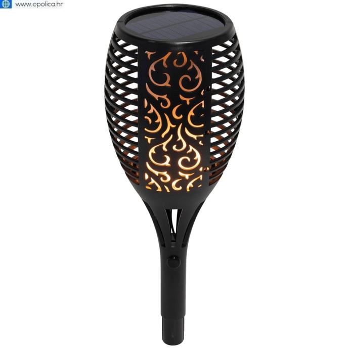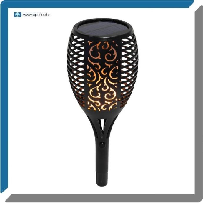 Solarna dekorativna svjetiljka, realan efekt baklje, automatsko uključivanje i isključivanje, ugrađena solarna ćelija i punjač za bateriju, otporno na atmosferske utjecaje, ugrađena Li-Ion baterija 3.7 V / 1200 mAh, izvor svjetla 72 LED žute boje, ubodna u zemlju, dimenzije Ø13.5 x 78 cm.