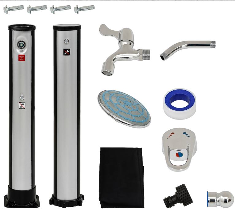 Za topli ljetni tuš jednostavno priključite svoje vrtno crijevo. Solarni modul zagrijava vodu do 60 stupnjeva Celzija. Koristite automatsku mješalicu s jednom polugom za podešavanje željene temperature. Okrugla tuš slušalica može se okretati u svim smjerovima i osigurava istinsko wellness iskustvo. Tuš je e opremljen i dodatnom slavinom. Na taj način noge se mogu oprati vrlo udobno.
