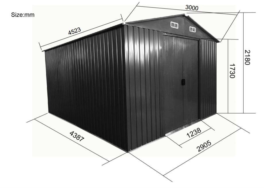 Vanjske sa krovom 300 x 452cm (oko 13.5 m²), visina grebena: 218cm