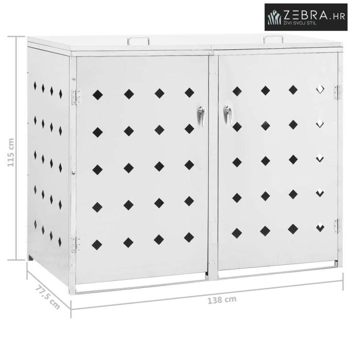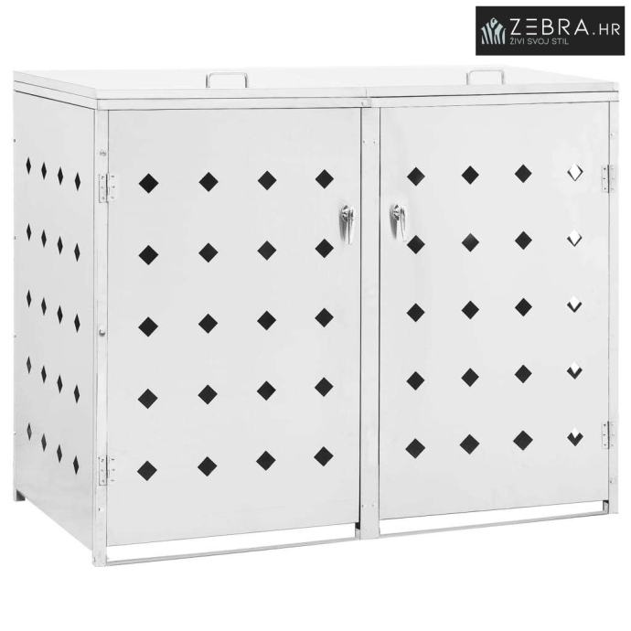 Ako tražite dugotrajno i estetski privlačno rješenje za skrivanje kanti za smeće, ovo spremište za dvije kante za smeće od nehrđajućeg čelika je idealan izbor. Njegova otpornost na vremenske uvjete, ventilacija i sustav zaključavanja čine ga praktičnim i funkcionalnim dodatkom vašem dvorištu.