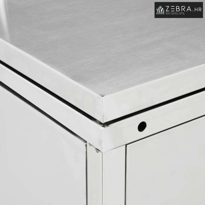 Napravljeno od nehrđajućeg čelika, spremište za kantu za smeće izuzetno je otporno na vremenske utjecaje i izdržljivo. Korisni ventilacijski otvori omogućuju cirkulaciju zraka i sprječavaju neugodne mirise u spremištu za smeće, dok sustav zaključavanja omogućuje sigurno spremanje smeća. Pored toga, praktična vrata omogućuju vam jednostavno stavljanje i vađenje kante za otpad.