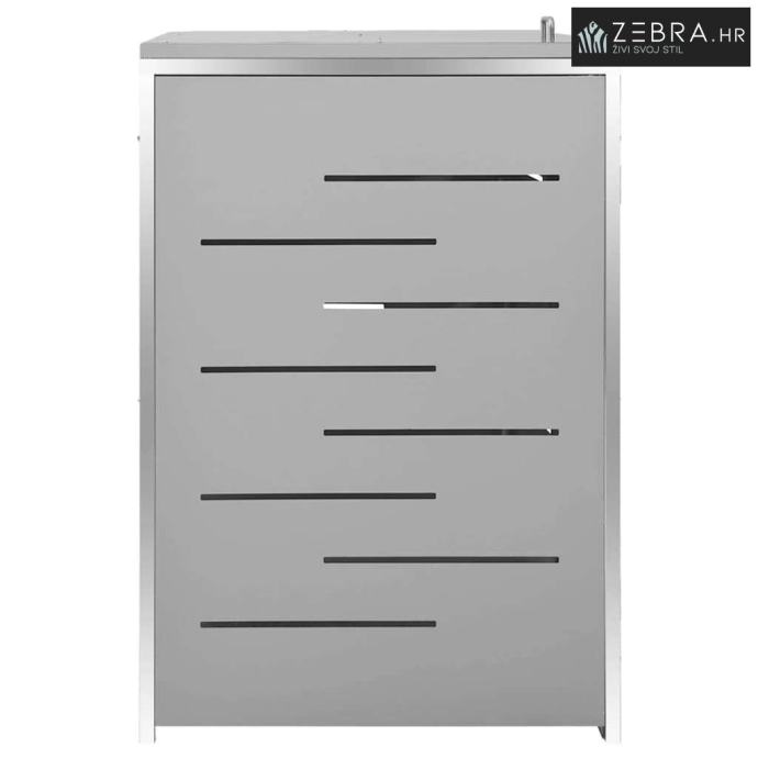 Ovo spremište za kante za smeće napravljeno je od pocinčanog čeličnog panela i okvira od nehrđajućeg čelika, zbog čega je iznimno čvrsto i otpornu na hrđu. Šuplji dizajn omogućuje cirkulaciju zraka i sprječava neugodne mirise u kutiji za smeće, dok sustav zaključavanja omogućuje sigurno spremanje smeća. Uz to, praktičan poklopac i opruge olakšavaju vam stavljanje i vađenje kante za otpad.