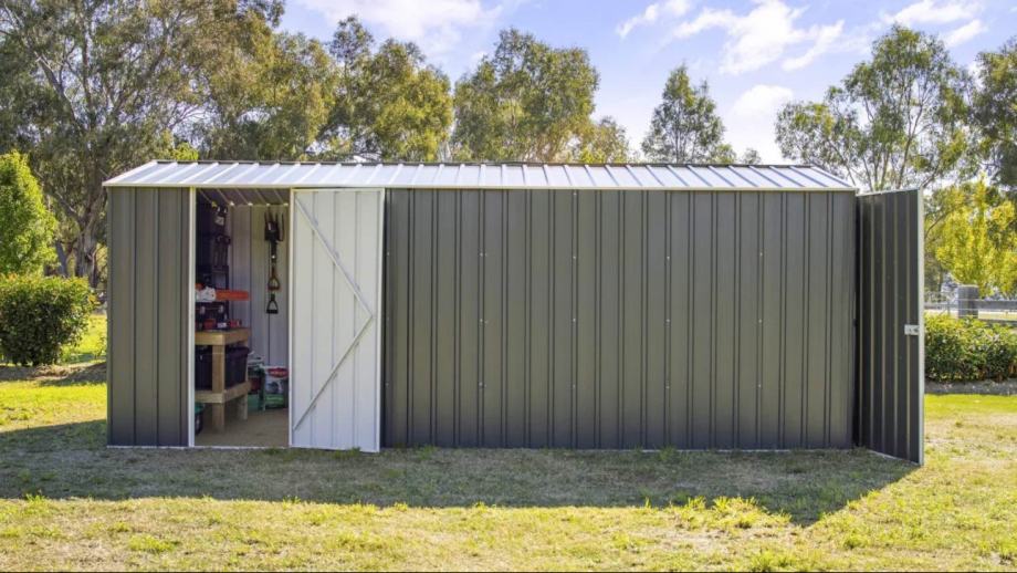 Idealan je, isplativ i praktičan prostor za odlaganje vrtnog alata, namještaja, motocikala, kosilica, bicikala, služi kao i garaža, i još mnogo toga! Praškasti pocinčani lim, koji je otporan na vremenske uvjete i ima vrlo dug vijek trajanja, mora se montirati na čvrsti pocinčani okvir. Kućica / skladište / ima velika krilata vrata.