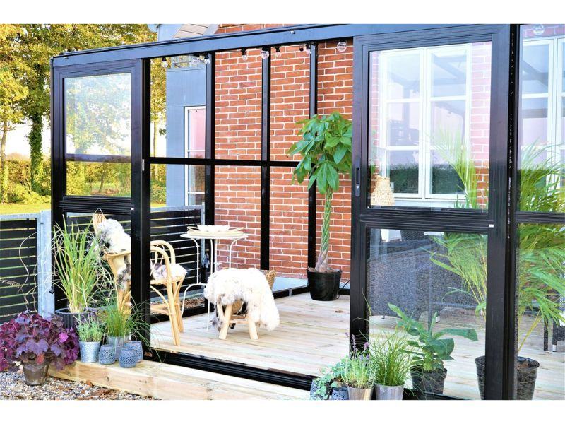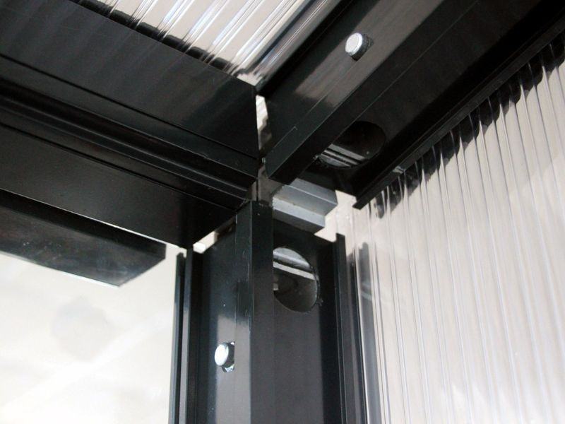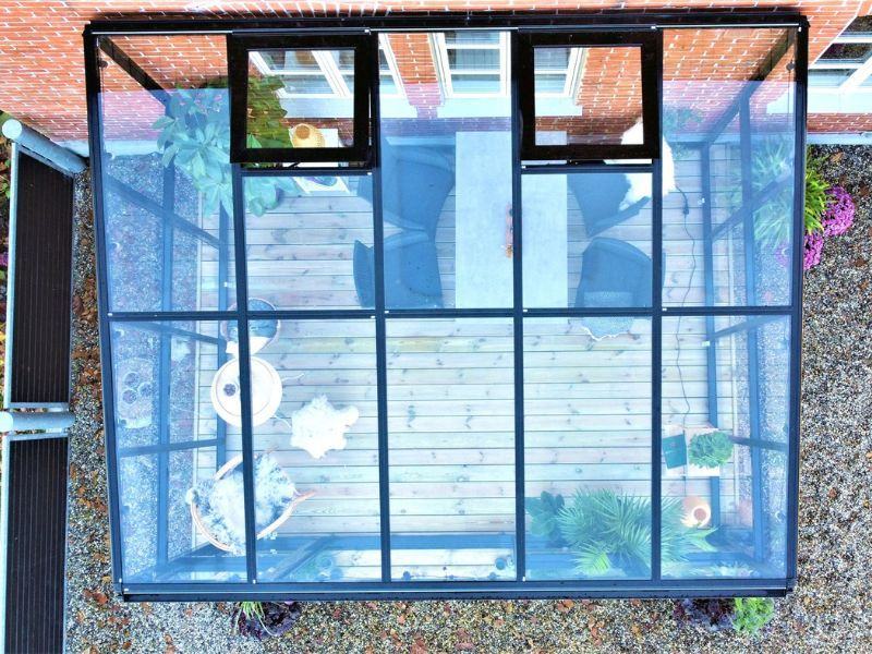 Staklenik je izrađen od masivnih aluminijskih profila 65x65 mm. Staklene ploče od 4 mm pružaju maksimalnu propusnost svjetlosti i zaštitu od vremenskih uvjeta, čineći staklenik praktičnim, ali i dugovječnim i pouzdanim.