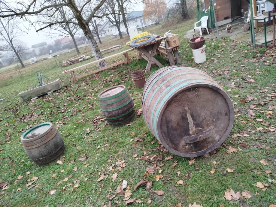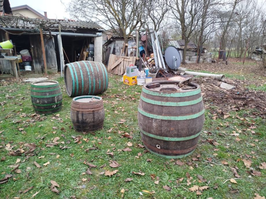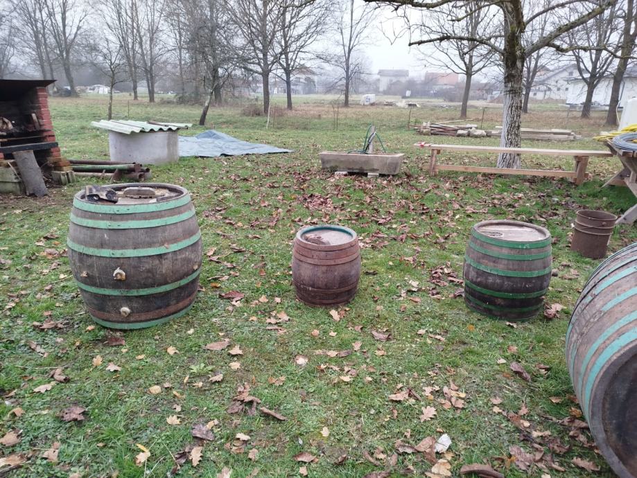 Polovne drvene bačve kao na slici .Prodajem. cijena za sve 300 EURA. Nisu za držanje vina.Bačve se nalaze u okolici Ivanić-Grada.