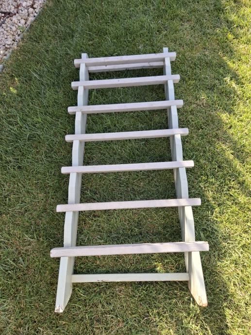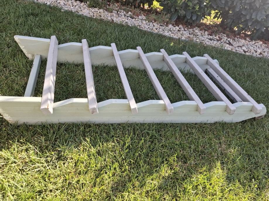 Stepenice za dječju kučicu, bez ostecenja, nema trulih dasaka, koristene godinu i pol dana, kao nove. Napravljene od drveta tikovine.