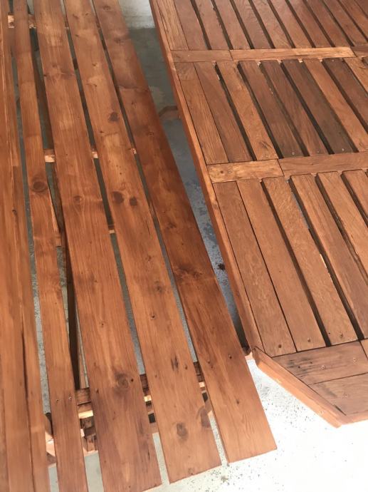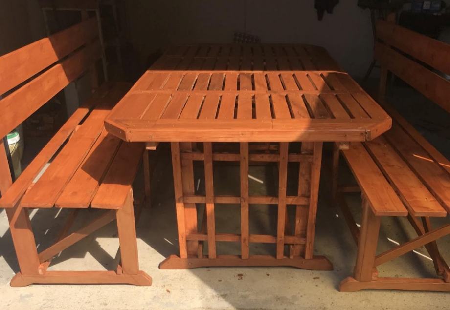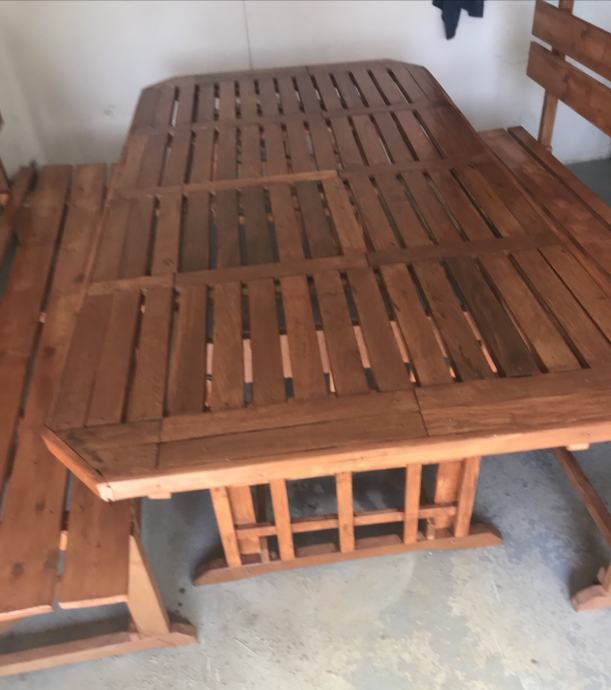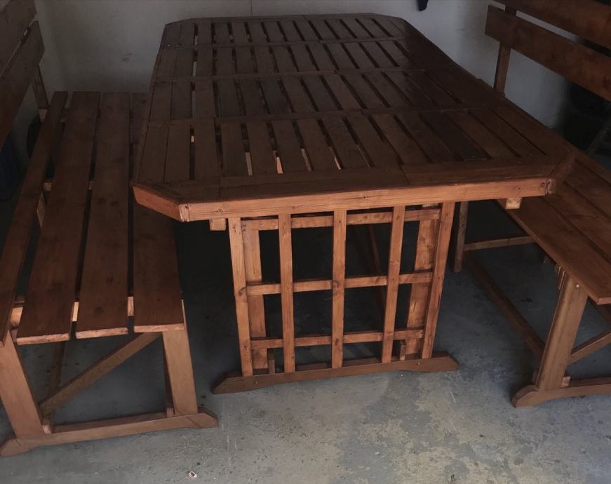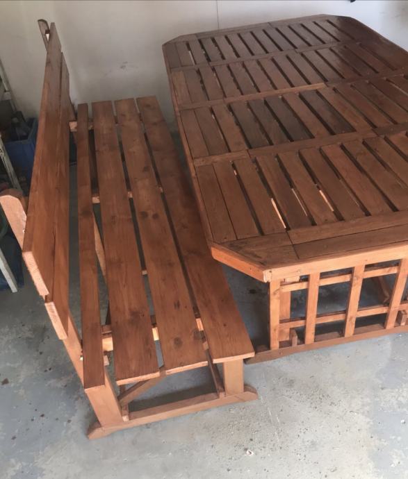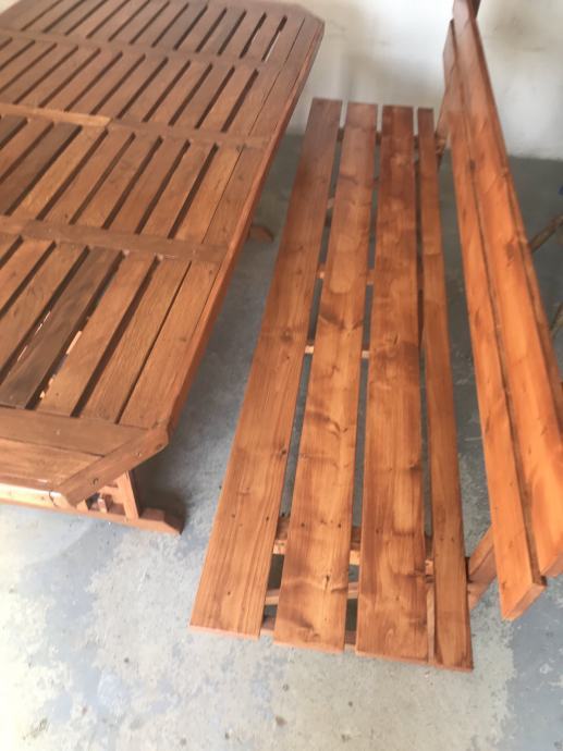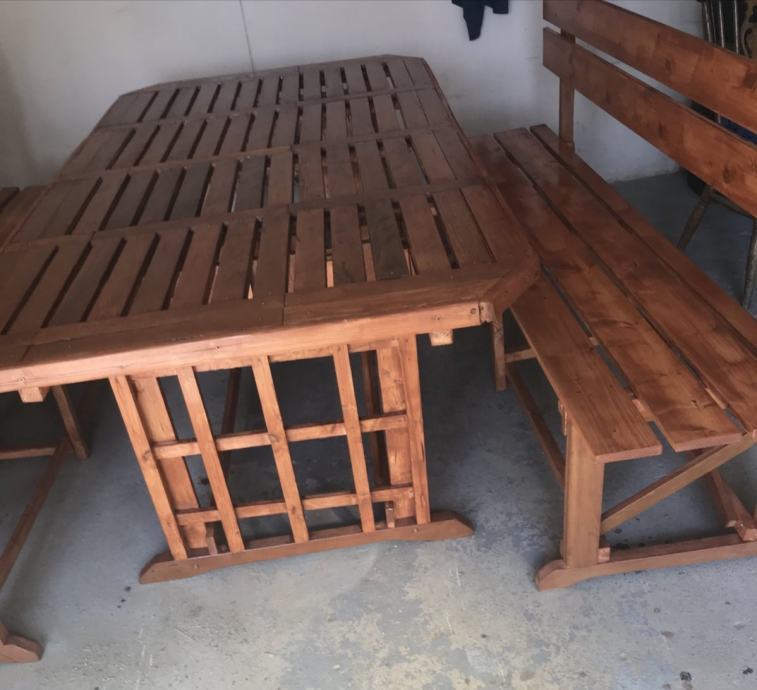 Stol i klupe za terasu. Dimenzije stola su 2x1m.