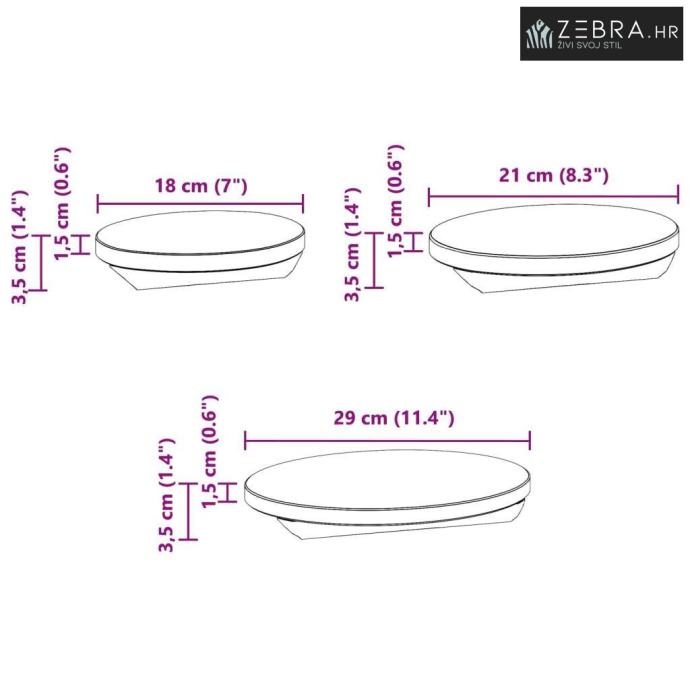 Set više veličina: Ovaj set dolazi u tri veličine: 29 cm, 21 cm i 18 cm, idealne su za razne visine i vrste biljaka. Različite dimenzije pružaju vam fleksibilnost u stilu i funkcionalnosti, stvarajući dinamičan vizualni interes u svakom okruženju.