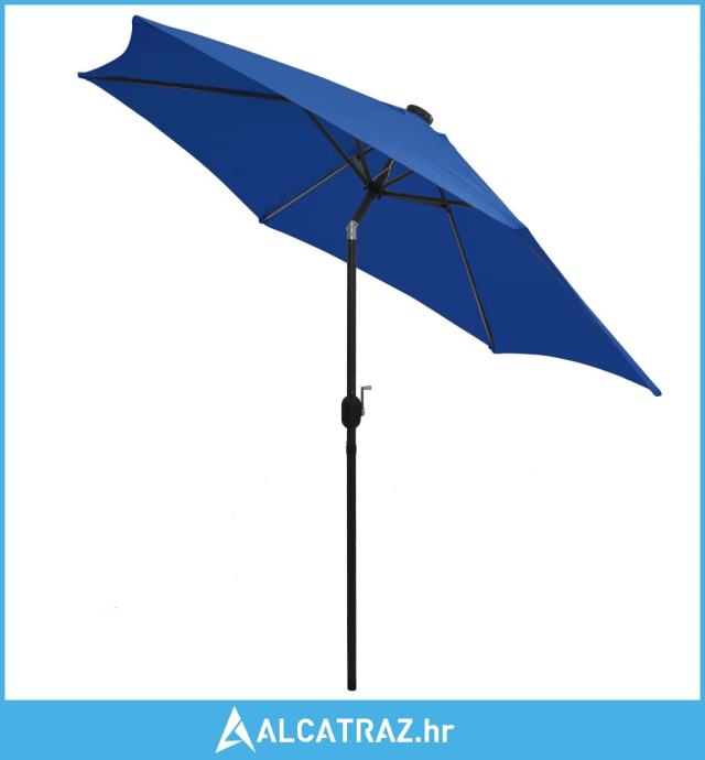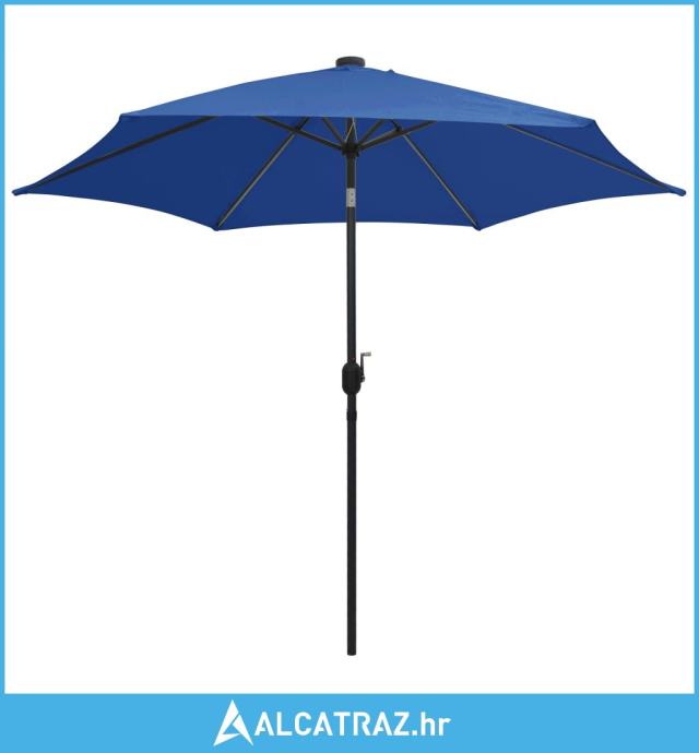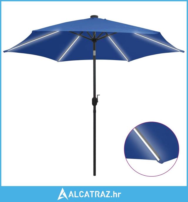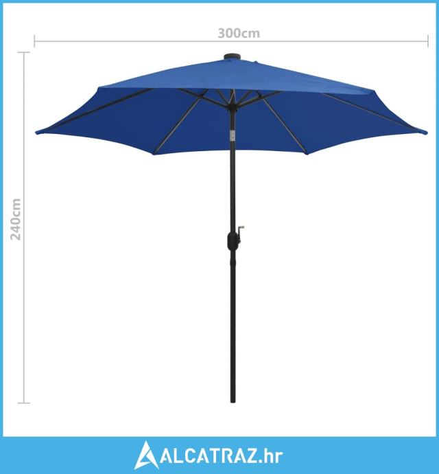 Suncobran s LED svjetlima i aluminijskom šipkom 300 cm azurni - NOVO