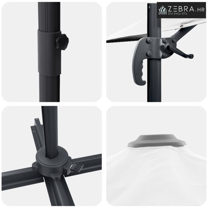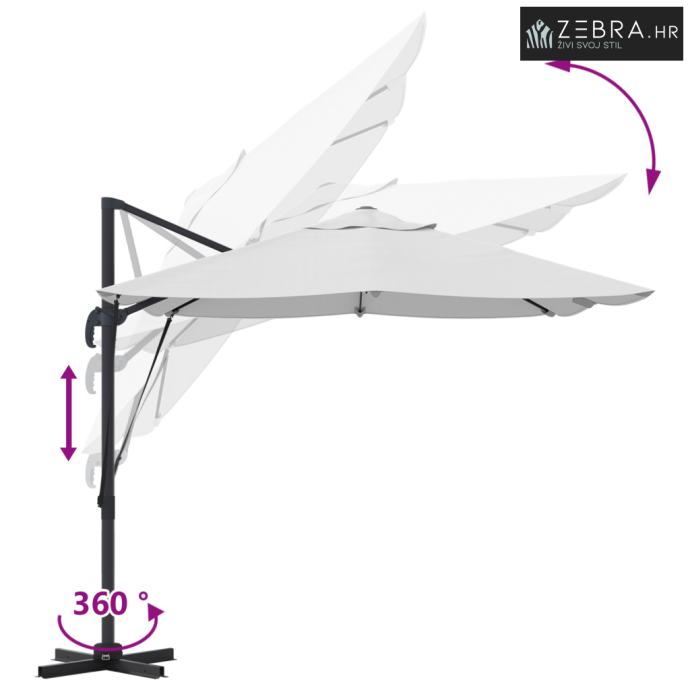 Moderni dizajn: Ovaj cantilever suncobran podiže izgled svakog vrta ili terase. Njegove čiste linije i jednostavan stil fokusiraju se na praktičnost, čineći ga chic izborom za vaš vanjski prostor.