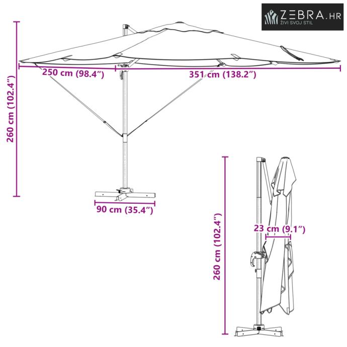 Moderni dizajn: Ovaj cantilever suncobran podiže izgled svakog vrta ili terase. Njegove čiste linije i jednostavan stil fokusiraju se na praktičnost, čineći ga chic izborom za vaš vanjski prostor.