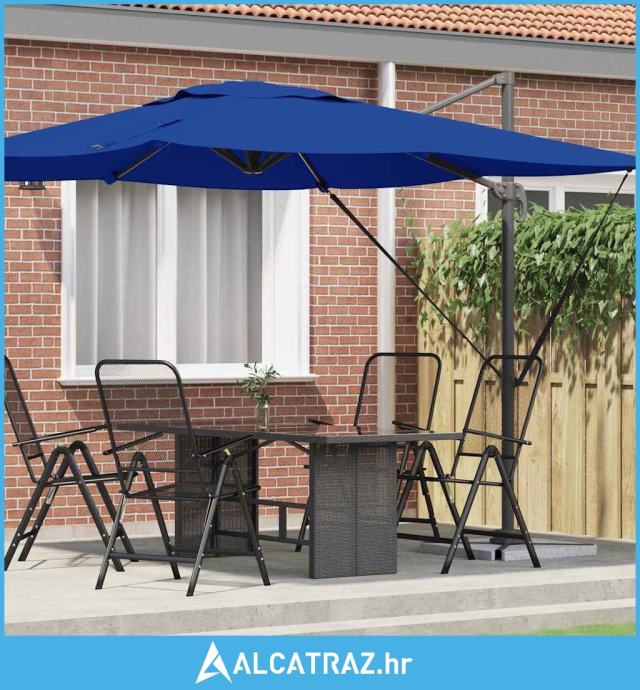Ovaj kantilever suncobran za terasu spaja praktičnost i moderni stil, što ga čini odličnim izborom za vanjsku sjenu. Sjajna plava tkanina čini ga sjajnim dodatkom svim vanjskim prostorima, dok vas štiti od sunca.