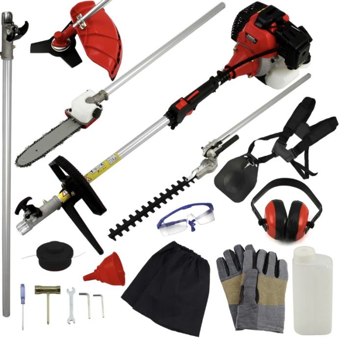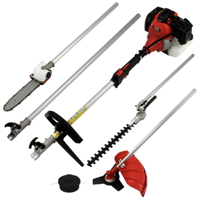5 multifunkcionalnih nastavaka omogućuje vam da bez napora prilagodite alat zadatku koji je pred vama. Sastoji se od škara za živicu, motorne pile, trimera za travu, trimera za grmlje i praktičnog produžnog štapa od 100 cm, ovaj multifunkcionalni alat zaista radi sve.