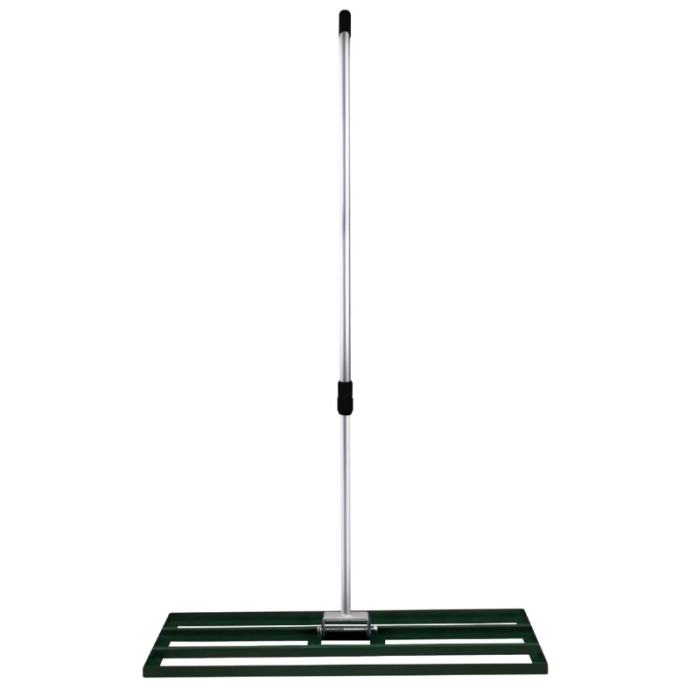 Nevjerojatno izdržljiva, ploča za pod od 100 cm izrađena je od jakog pocinčanog čelika i završena prekrasnom zelenom bojom s praškastim premazom koja je ne samo izdržljiva, već i prekrasno nadopunjuje vanjski izgled. Uparen s produljivom ručkom izrađenom od aluminija, nivelator je izuzetno robustan, a istovremeno super lagan kako bi se omogućilo lako manevriranje.