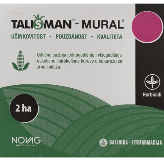 Kombinacija za suzbijanje korova na 2 ha kukuruza (1 L MURALA i 2 L TALISMANA). MURAL® selektivni translokacijski herbicid u obliku vodotopivog koncentrata (SL), koji djeluje površinski preko lista i translocira se provodnim žilama kroz stabljiku do korijena.