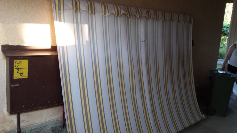 Tendu za balkon i terasu širine 2,8 m, izbačaja 2 m ručno razvlačenje, u odličnom stanju, neoštećena, malo korištena prodajem za 500 kn.