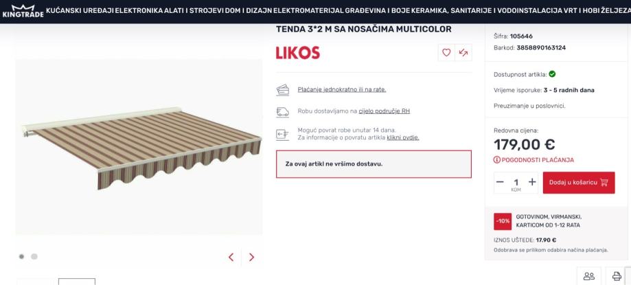 2. Tenda 4 x 2,5 metra sa nosačima Multicolor kupljena u kingtrade Makarska ljeto 2023 150 €