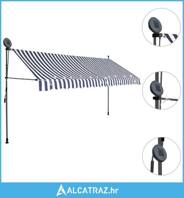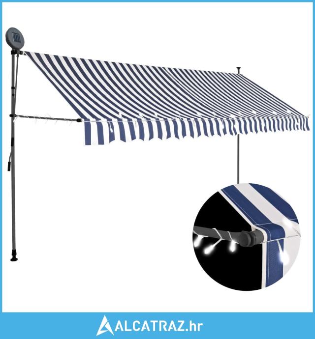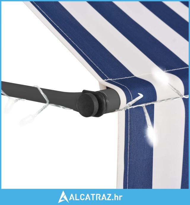 Tenda na ručno uvlačenje s LED svjetlima 400 cm plavo-bijela - NOVO