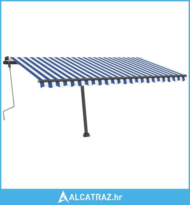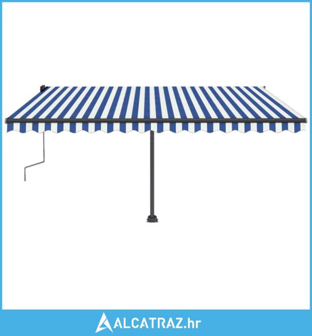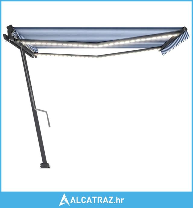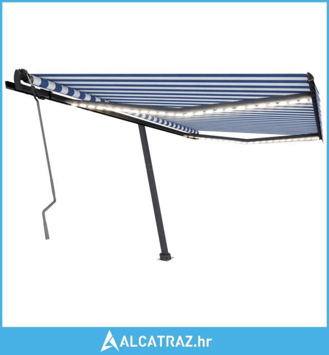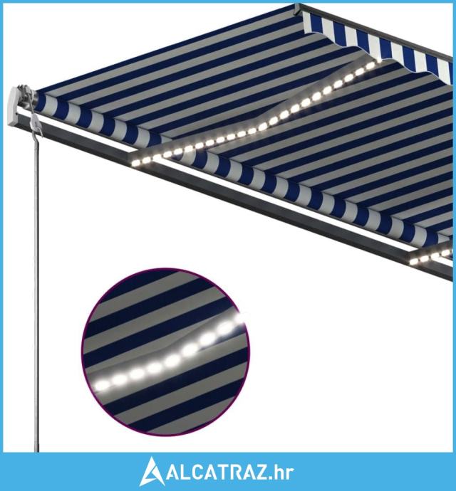 Tenda na ručno uvlačenje s LED svjetlom 400x350 cm plavo-bijela - NOVO
