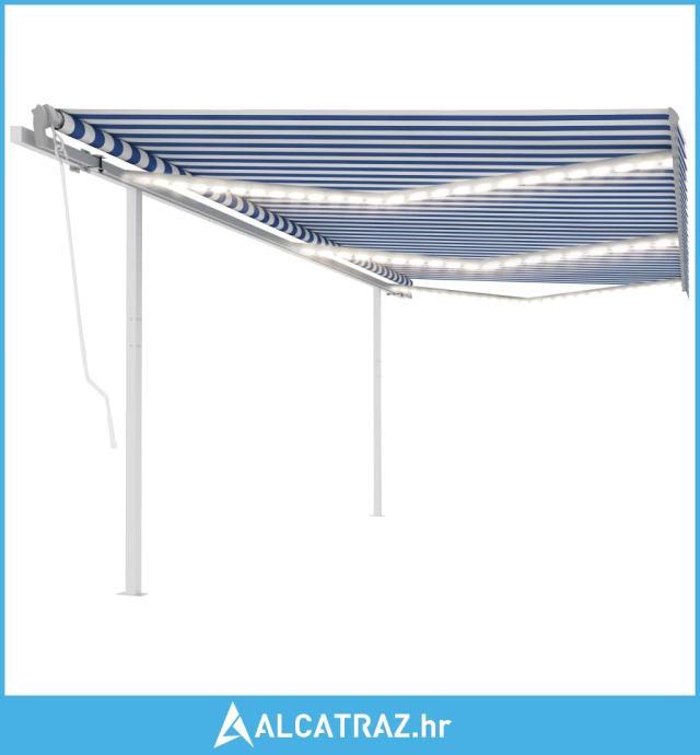 Tenda na ručno uvlačenje s LED svjetlom 6x3 m plavo-bijela - NOVO