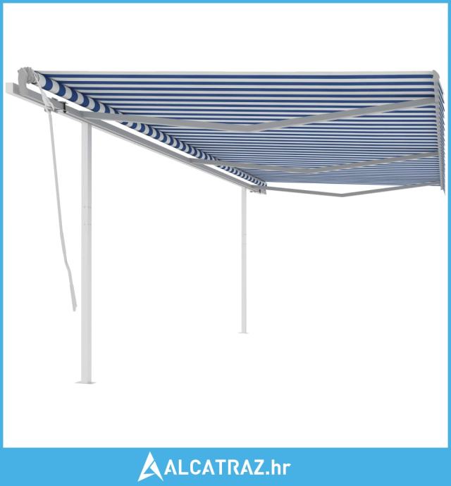 Tenda na ručno uvlačenje sa stupovima 6 x 3,5 m plavo-bijela - NOVO