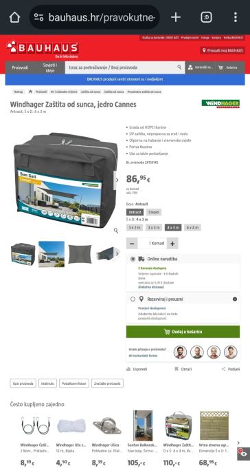 Naše jedro za sjene nije samo funkcionalno, već je i estetski privlačno. Sa svojim modernim i elegantnim dizajnom, savršeno se uklapa u svaki vanjski prostor, dodajući dašak stila i elegancije. Dostupan je u različitim bojama i veličinama, što omogućuje savršeno prilagođavanje Vašim potrebama i željama.