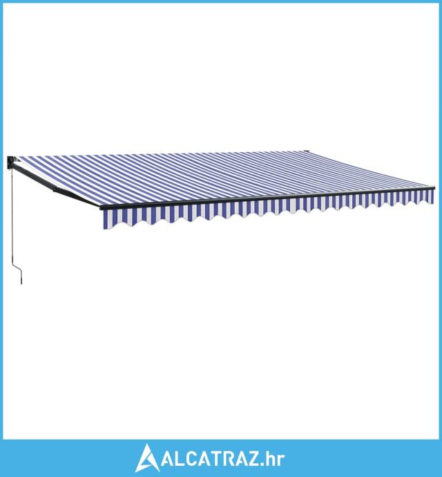 Tenda na uvlačenje plavo-bijela 5 x 3 m od tkanine i aluminija - NOVO