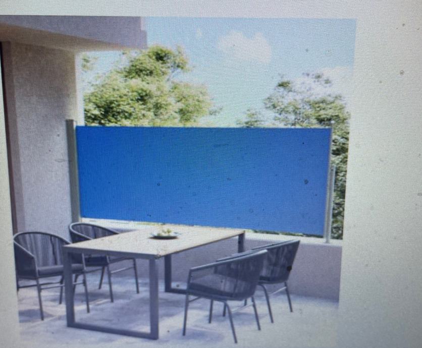 Prodajem uvlačivu sklopivu bočnu tendu za balkon, lođu, terasu ili vrt, plave boje, visine 120 cm X dužine 300 cm za zaštitu od sunca i vjetra.