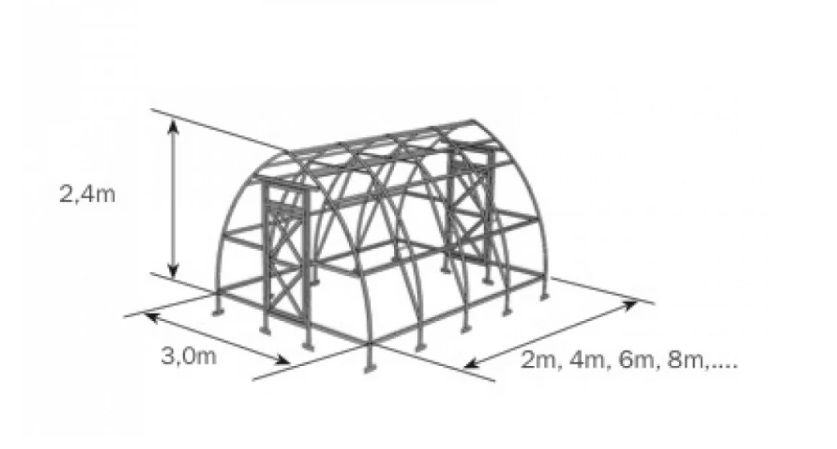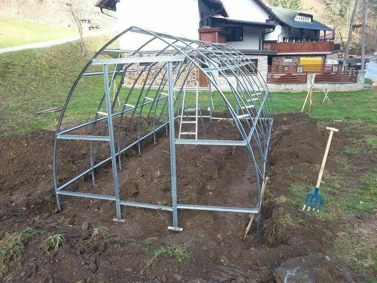 Visina okvira plastenika je 2,4 m. Za plastenik nije potreban temelj.
