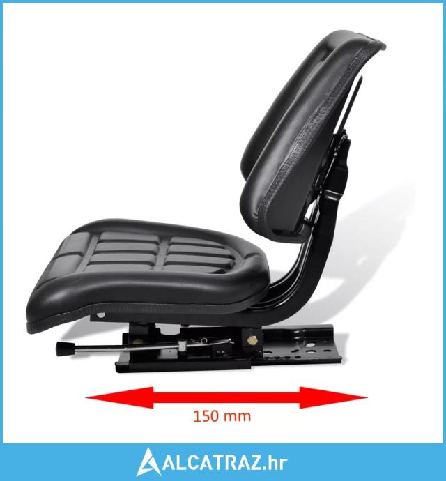 Ovo visokokvalitetno sjedalo za traktor s naslonom će vam pružiti dodatnu udobnost. Posebna pjena čini naslon udobnijim i ugodnim. Traktorsko sjedalo ima kliznu stazu za jednostavnu i fleksibilnu instalaciju. Veći broj rupa za pričvršćivanje je dodan na temeljnu ploču za veću čvrstoću. Crni pokrov sjedala je vrlo izdržljiv i vodootporan. 150 mm uzdužno podešavanje pruža više udobnosti i komfora.