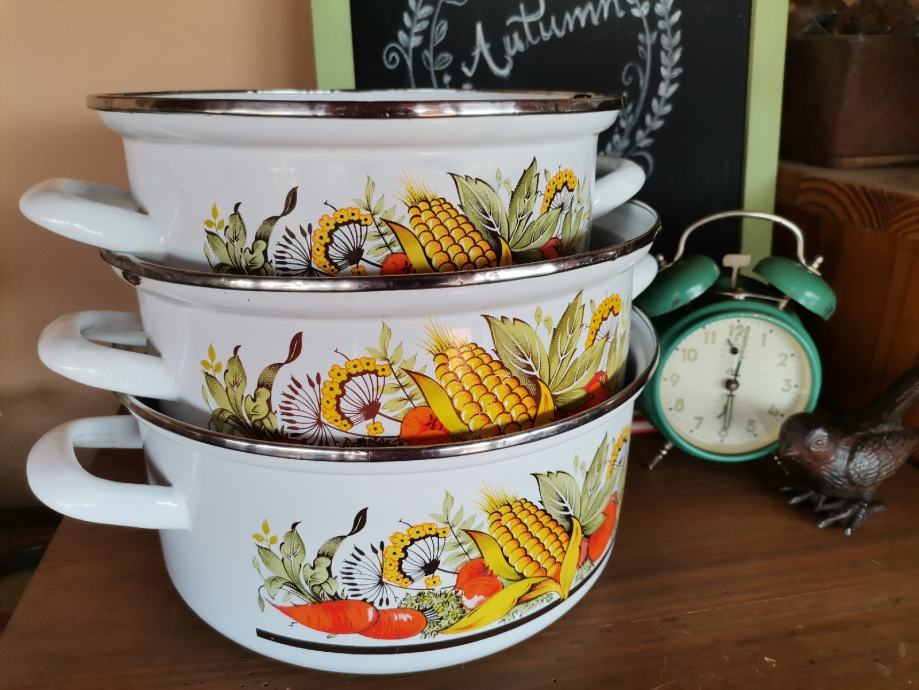 Tri korištene šerpe za ukrašavanje vrta ili balkona kao ukrasni kalići i sl. Dimenzije ØxV: 22x10, 24x10,5 i 26x11,5 cm. Zemlja porijekla: Turska. Preuzimanje ili slanje na trošak kupca.