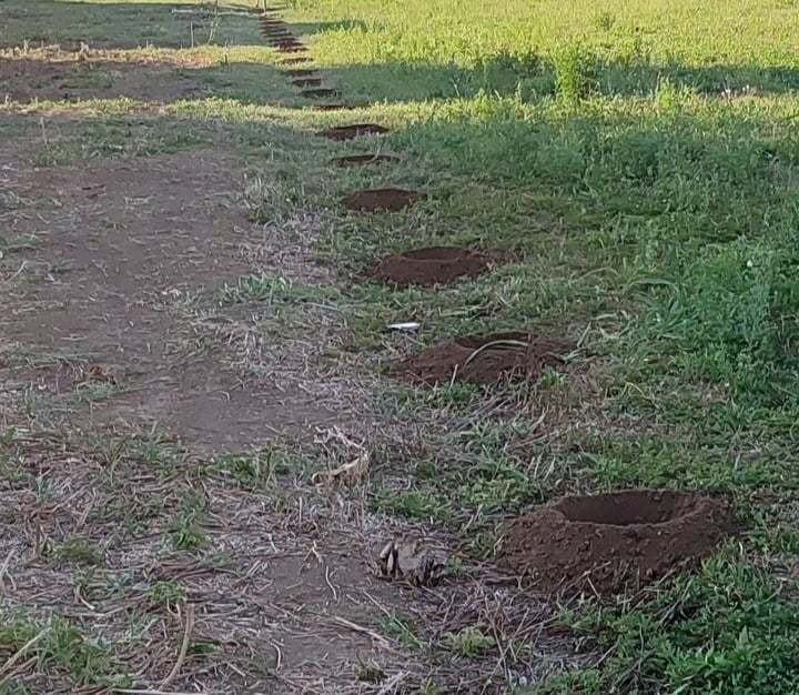 Rupe iskopane u zemlji promjera 30 cm i razmaknute na odgovarajuću udaljenost (jedna od druge), ispunjavaju se betonom.