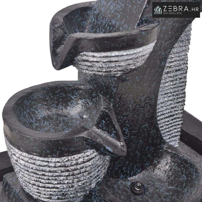 Ova zanimljiva fontana,nadopunit će svaki dekor. Ima četverostruki kaskadni protok vode i LED rasvjetu, što čini nevjerojatan vizualni efekt, posebno noću. Izrađena od poli-smole, otporna je na UV zračenje, što znači da će izgledati dobro i zadržati svoju boju ako se postavi na izravnu sunčevu svjetlost. Višestruki tok strujanja vode i umirujući zvuk vode koja curi,stvara opuštajuću i meditativnu atmosferu. Uvrštena, kvalitetna pumpa osigurava siguran i pouzdan rad.