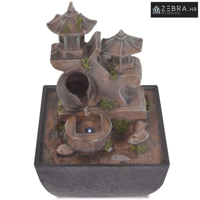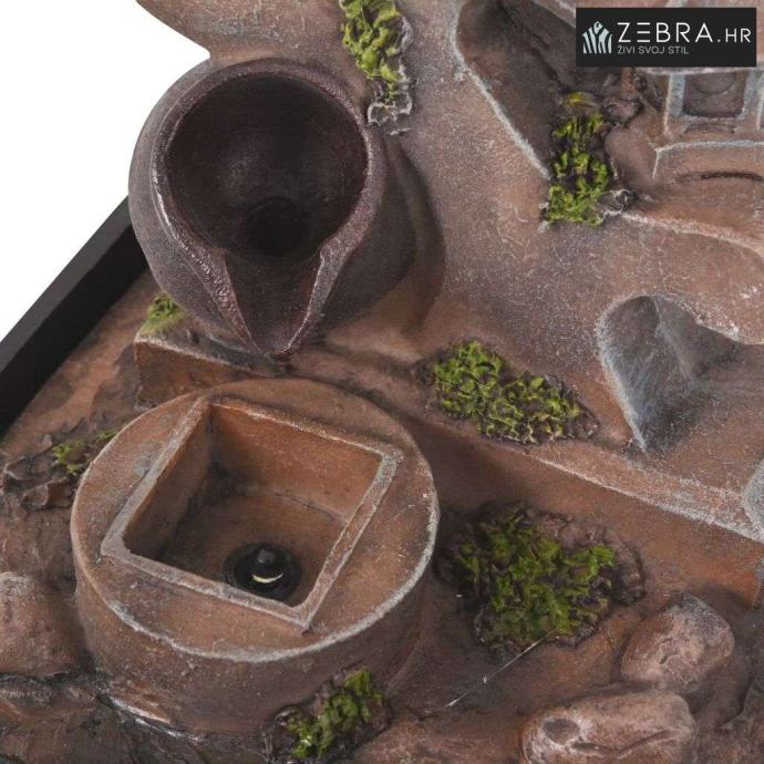 Fontana je izrađena od poliesterske smole. Njeni kaskadni tokovi su obasjani LED svjetlima, što će stvoriti prekrasni vizualni efekt, naročito noću. Višestruki izvori strujanja i umirujući zvukovi rominjajuće vode stvaraju opuštajuću i spokojnu atmosferu. Uključena visokokvalitetna pumpa jamči sigurno i pouzdano funkcioniranje.