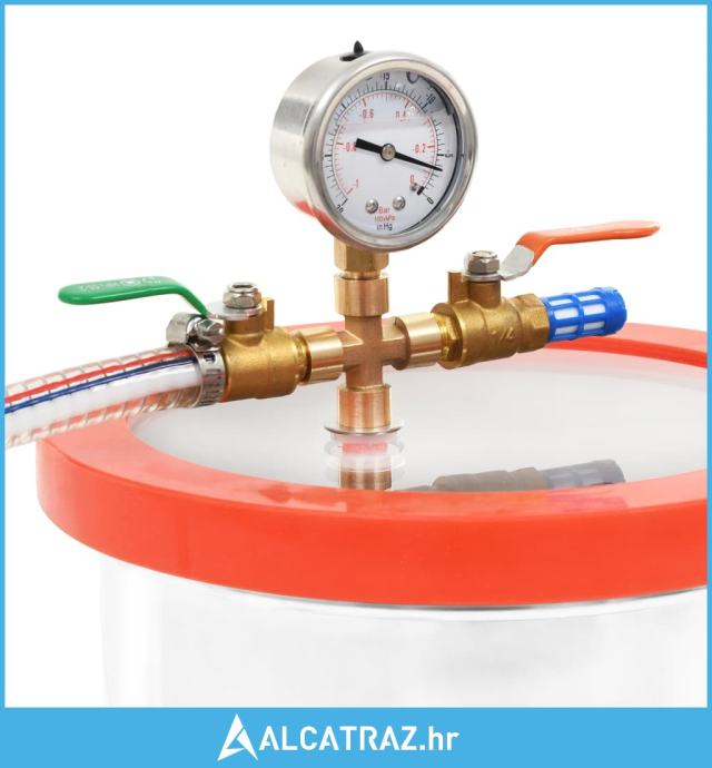 Komora za otplinjavanje dobro je zatvorena kako bi se spriječilo curenje i pružilo sigurno, pouzdano sredstvo za otplinjavanje. Materijal od nehrđajućeg čelika osigurava otpornost na trošenje i pritisak. Uz to, izuzetno debeli, prozirni akrilni poklopac, koji se neće saviti u vakuumskim postupcima, omogućuje bolje promatranje cijelog procesa otplinjavanja. Nadalje, uključeno je vakuumsko mjerilo od silikonskog ulja i vakuumski mjerač otporan na udarce za bolji nadzor. Čelično crijevo također može izdržati veliki pritisak.