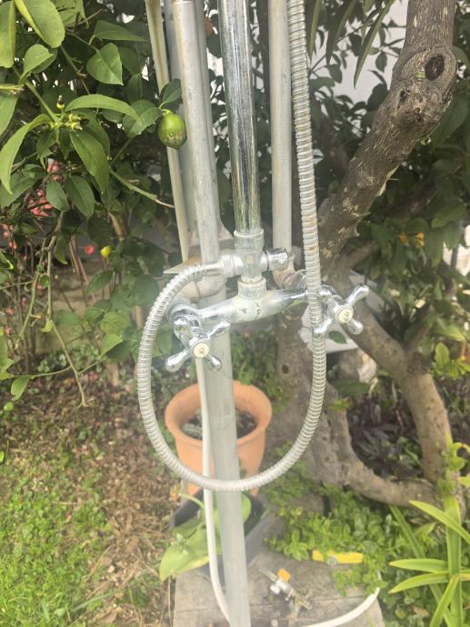 Prodajem potpuno isoravan i funkcionalan vanjski tuš u kompletu sa slavinom, tušem i stalkom... Cijena je za sav komplet