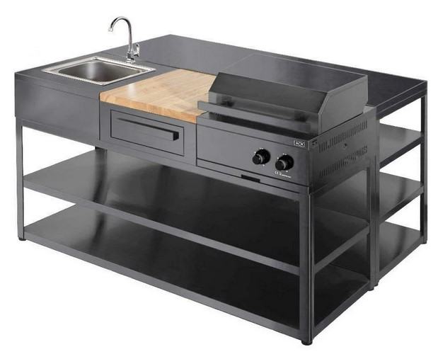 Proizveden od nehrđajućeg čelika elegantnog crnog dizajna, modul sudopera služi mnogim praktičnim svrhama u vanjskoj kuhinji.