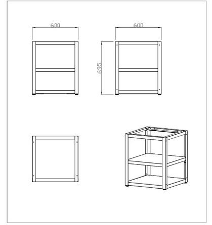 Dimenzije (Širina x Visina x Dubina): 60 x 69,5 x 60 cm