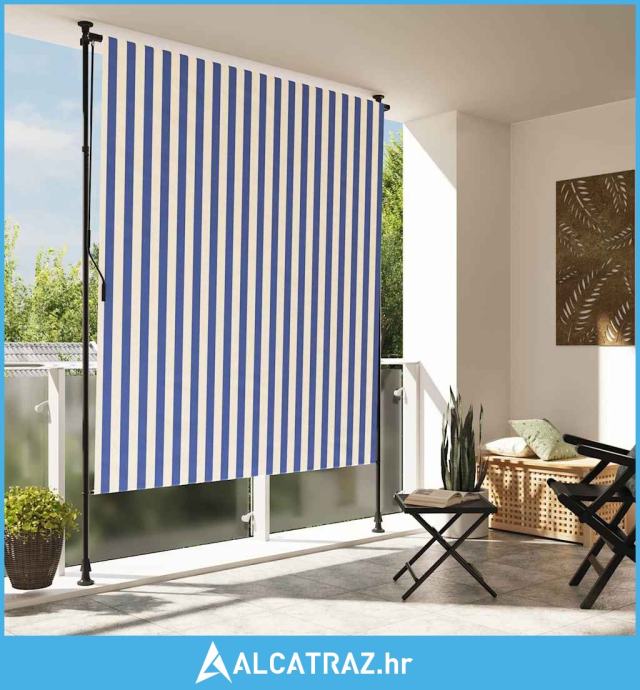 Vanjska roleta plavo-bijela 200 x 270 cm od tkanine i čelika - NOVO