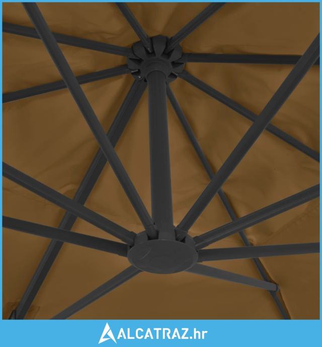 Ovaj suncobran ima čvrst aluminijski okvir, veliku tendu otpornu na UV zračenje i dodatno prijenosno postolje, tako da je savršen za zaštitu od sunčeve svjetlosti.