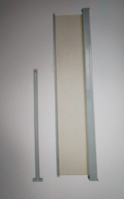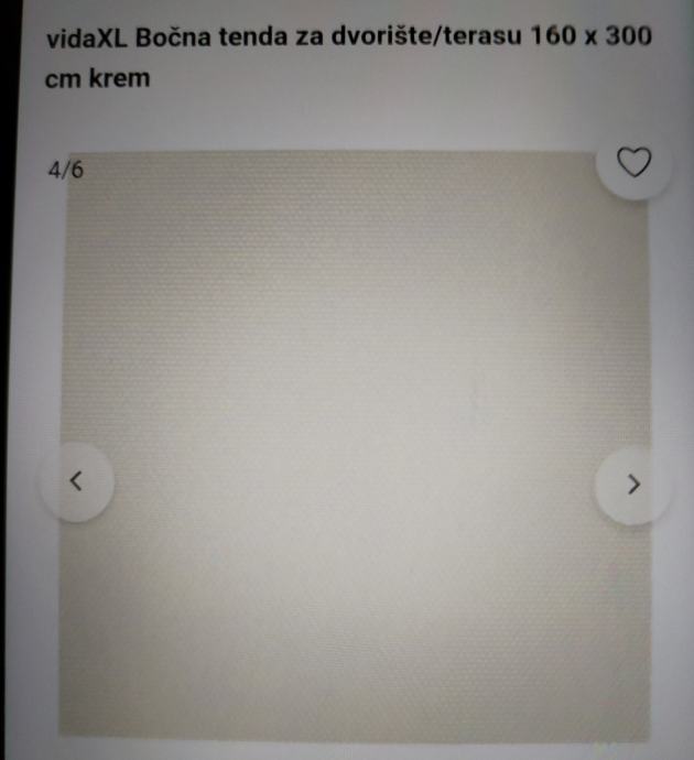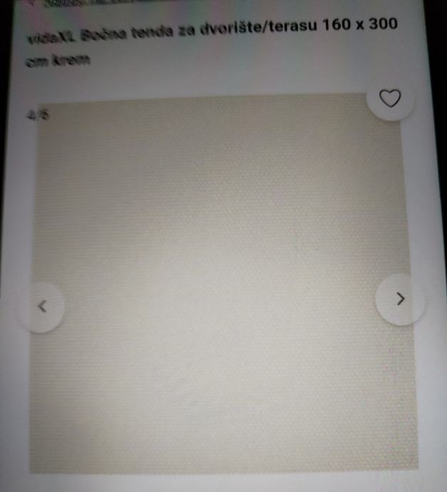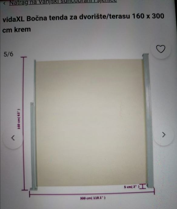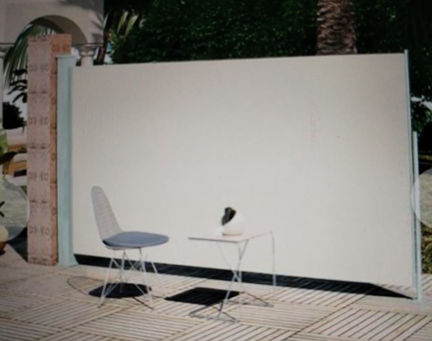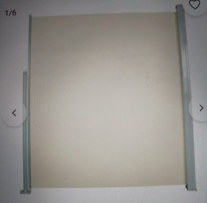 Bočna tenda za dvorište ili terasu na izvlačenje, za zaklon od pogleda krem boje dimenzija 160 x 300 cm. Nova ne korištena u kutiji. Nama ne odgovara, kupili pogrešan tip. Plaćeno 70€.