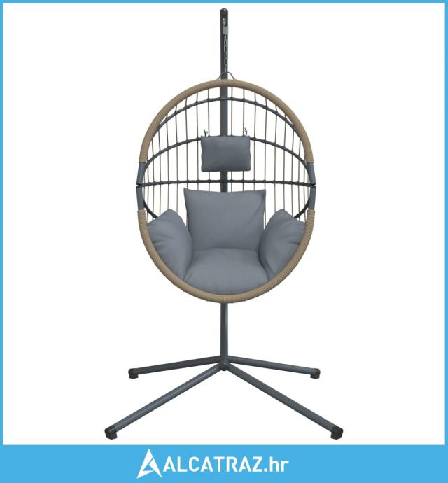 Viseća stolica jaje s postoljem svijetlosivi od ratana i čelika - NOVO