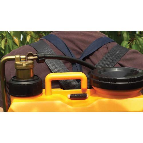 Leđna tlačna prskalica VOLPI KOMFORT 9116KOS od 16 lit. lagana je i pouzdana leđna prskalica. VOLPI KOMFORT 9116KOS prskalica namijenjena je uporabi u poljoprivredi i vrtlarstvu, savršena za tretmane fitosanitarnim proizvodima na malim i srednjim površinama. Ispitani sustav pumpanja omogućuje lagano djelovanje na polugu, bez zamaranja radnika. Spremnik jamči savršenu ravnotežu između autonomije rada i težine. Aluminijsko koplje s ergonomskom ručkom na klik i mlaznicom od mesinga osigurava savršeno prskanje u širokim radnim područjima. Praktični sustav ruksaka s podesivim naramenicama omogućuje nošenje na ramenu bez zamaranja radnika, dok praktična ručka osigurava lako kretanje s mjesta na mjesto. Ovaj model opremljen je mesinganom pumpom Ø52, mesinganim kopljem od 700 mm i mesinganom ručkom sa sfernim ventilom. Proizvođač:VOLPI Model:9116KOS Kapacitet spremnika: 16 Lt Pritisak:6 bara Ručka od mesinga sa sfernim ventilom Podesiva naramenica Promjer punjenja otvora 115mm Materijal spremnika: Polietilen HD Mjedeno koplje Podesiva mlaznica za prskanje NBR brtve Masa prazne prskalice 3,20Kg