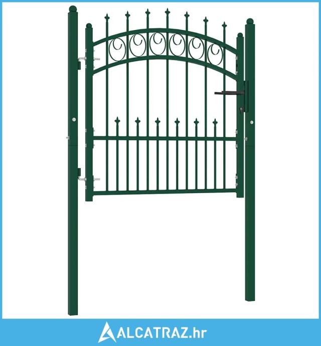 Izrađena od izdržljivog čelika, vrata za ogradu imaju čvrstu konstrukciju i premazana su prahom protiv hrđe i korozije. Uz okomite šipke sa šiljcima i snažnu vodoravnu prečku kao ojačanje, ova vrtna vrata pružaju visok stupanj sigurnosti. Lučni dizajn vrha pridonosi njihovoj eleganciji. Dolaze s dva snažna stupa s čvrstim šarkama za jednostavnu ugradnju, a sustav zaključavanja s tri odgovarajuća ključa također je uključen u isporuku.