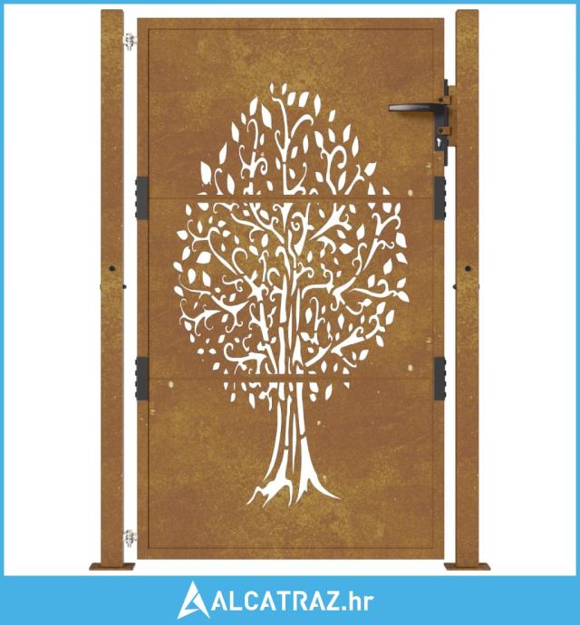 Vrtna vrata 105 x 130 cm od čelika COR-TEN s uzorkom stabla - NOVO