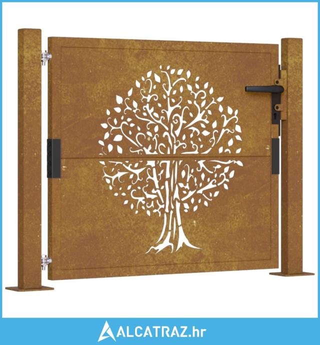 Vrtna vrata 105 x 80 cm od čelika COR-TEN s uzorkom stabla - NOVO
