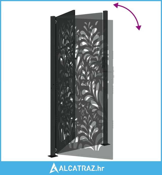 https://www.alcatraz.hr/trgovina/vrtna-vrata-crna-105x205-cm-celicni-valoviti-dizajn/